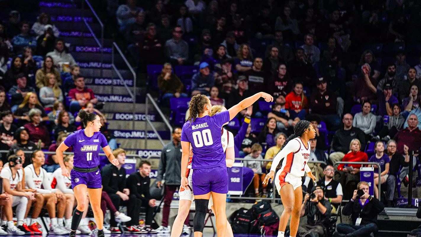 Peyton McDaniel knocked down six three-pointers as James Madison went 9-for-22 (.409) from behind the arc to defeat East Carolina, 83-66, in non-conference women’s basketball action on Wednesday night in Williams Arena at Minges Coliseum.