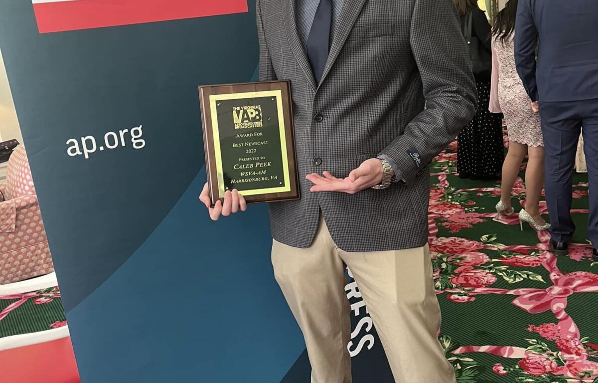WSVA newscaster Caleb Peek won his first awards from the Virginia AP, taking first place for best newscast and second place for best radio news anchor.