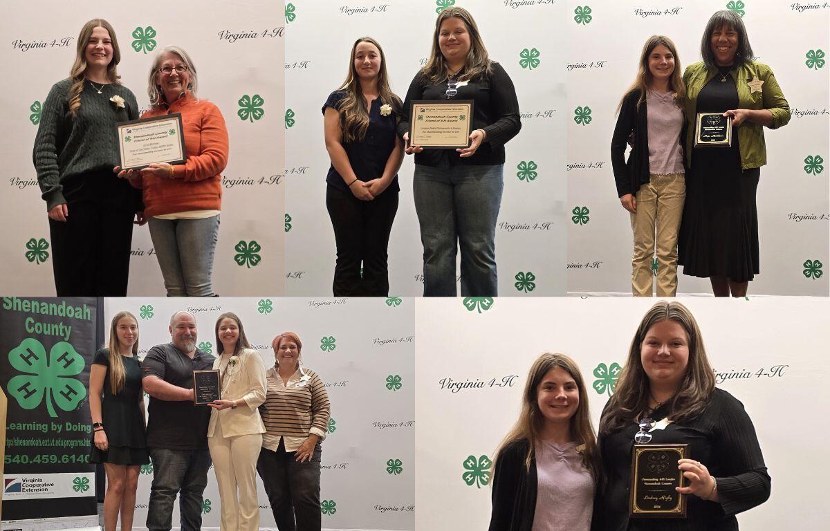 SHENANDOAH COUNTY, VA (Rocktown Now) — Outstanding 4-H members, leaders, and supporters were recognized during the annual 4-H Achievement Night program held in Woodstock. Outstanding County 4-H member awards went to Maggie Eaton, Southern Shenandoah 4-H Club, and Ariel Matthews, St. Luke-Saumsville 4-H Club. The Charlotte H. Rinker Leadership Award was presented to Margaret Copp of the St. Luke-Saumsville 4-H Club. The County Outstanding Leaders were Hope Matthews, St. Luke-Saumsville 4-H Club, and Lindsey Rigby, Shenandoah County 4-H Livestock Judging Team. The Outstanding 4-H Family Award went to Doris Lineweaver, Lee Hepner, Weston Copp, and Margaret Copp of the St. Luke-Saumsville 4-H Club.
