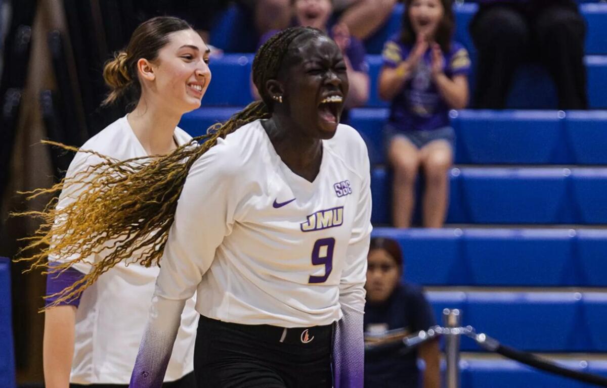 FOLEY, Ala. (JMU Athletics) – James Madison sophomore middle Ayen Nhial tallied a school-record 16 blocks as part of a historic night for the Dukes’ block, as JMU defeated the Troy Trojans in four sets (26-24, 25-14, 11-25, 25-23) on Friday night at the Foley Sports Tourism Center in the Quarterfinals of the 2025 Sun Belt Championship.