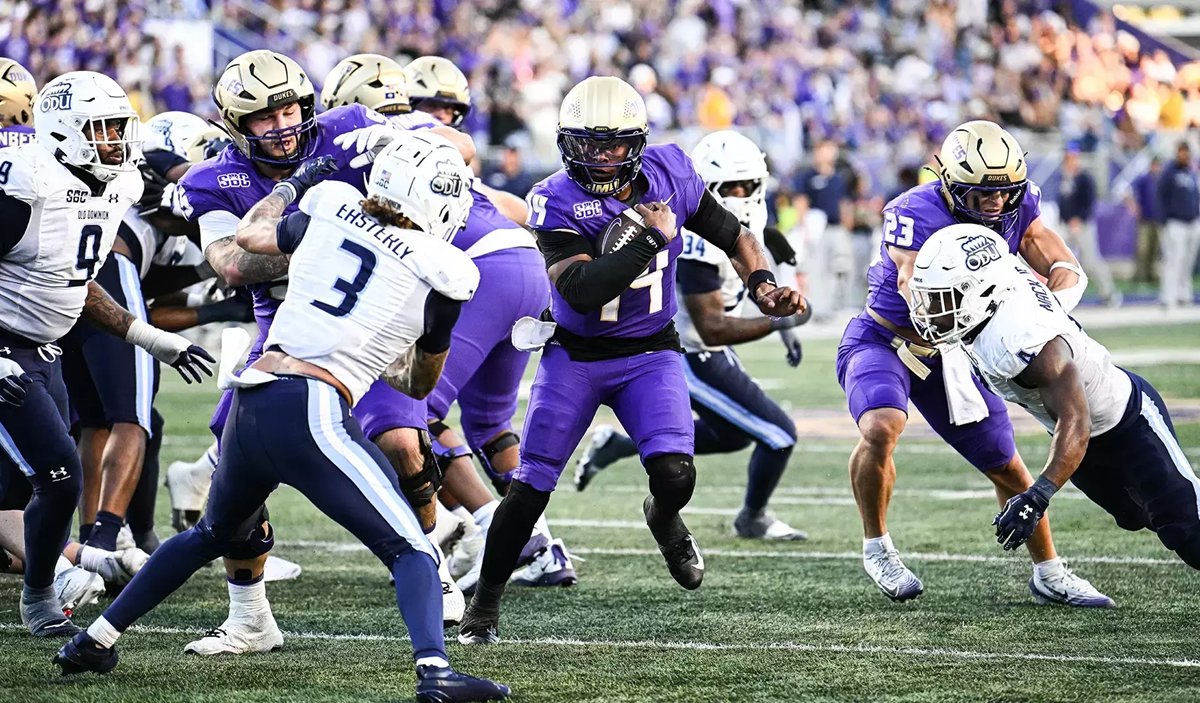 HARRISONBURG, Va. (JMU Athletics) – James Madison football scored 42 unanswered points and forced three second-half turnovers while Alonza Barnett III accounted for six touchdowns in a dominant 63-27 Homecoming victory over Old Dominion in Sun Belt Conference action on Saturday in front of a sold-out Bridgeforth Stadium.