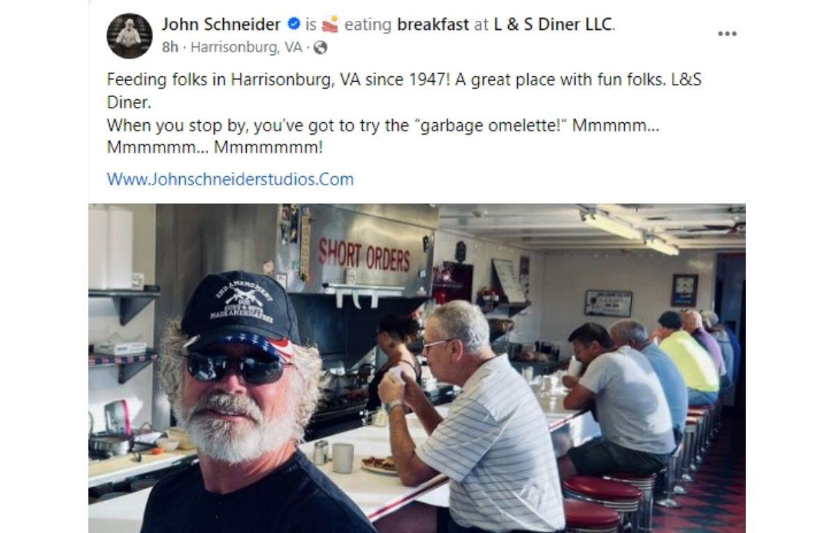 Schneider, who was also starred as Superman’s adoptive father Jonathan Kent on the television series Smallville, ate breakfast Tuesday morning at L & S Diner in downtown Harrisonburg.