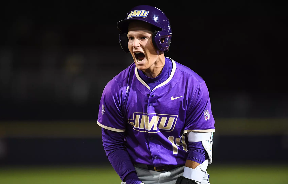 CHARLOTTESVILLE, Va. (JMU Athletics) – James Madison baseball knocked off No. 13 Virginia for the first time since 2007, scoring the winning run on a wild pitch in the 10th inning on Tuesday night for an 8-7 win at Disharoon Park.