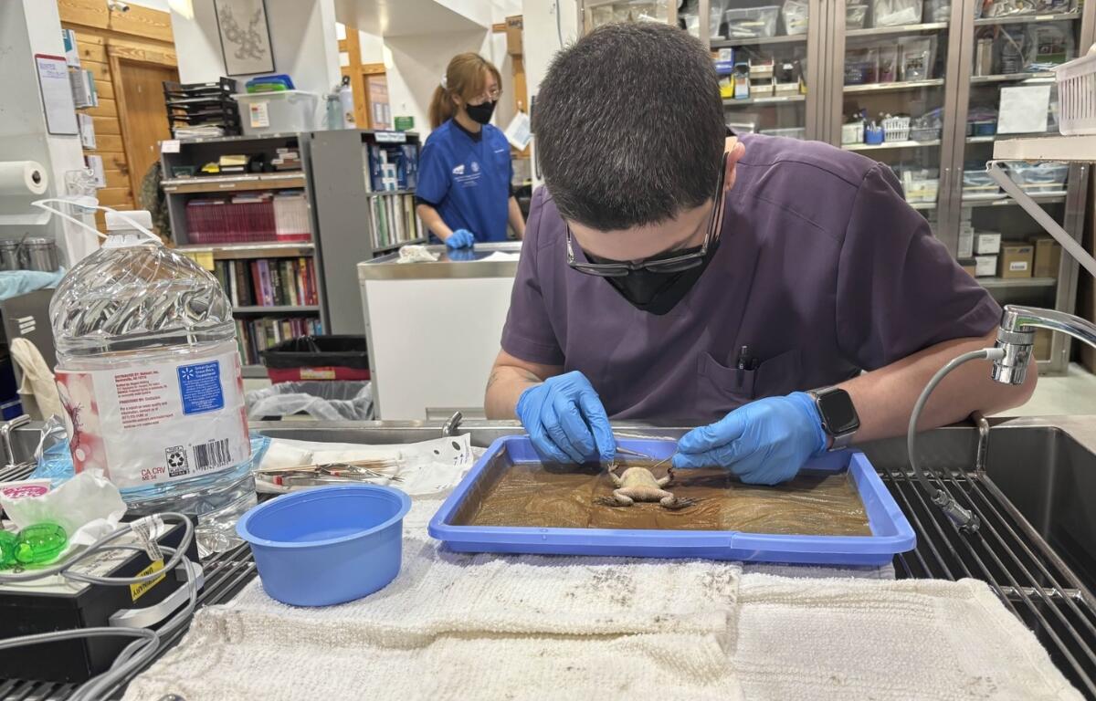 “The wound wasn’t very big to us, but for such a small toad, it was a fairly significant injury,” said Dr. Zack. “The hardest part about operating on an animal this small is making sure you’re not damaging anything else in the process. When placing sutures, I had to be extremely careful.”