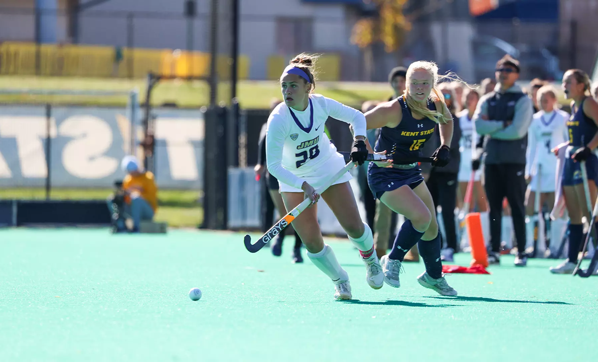 KENT, Ohio (JMU Athletics) – Ava Drexler-Amey sent in a cross that trickled past the Kent State defense to lift James Madison past the Golden Flashes in double overtime, 3-2, in Mid-American Conference field hockey action on Sunday afternoon at Murphy-Mellis Field.