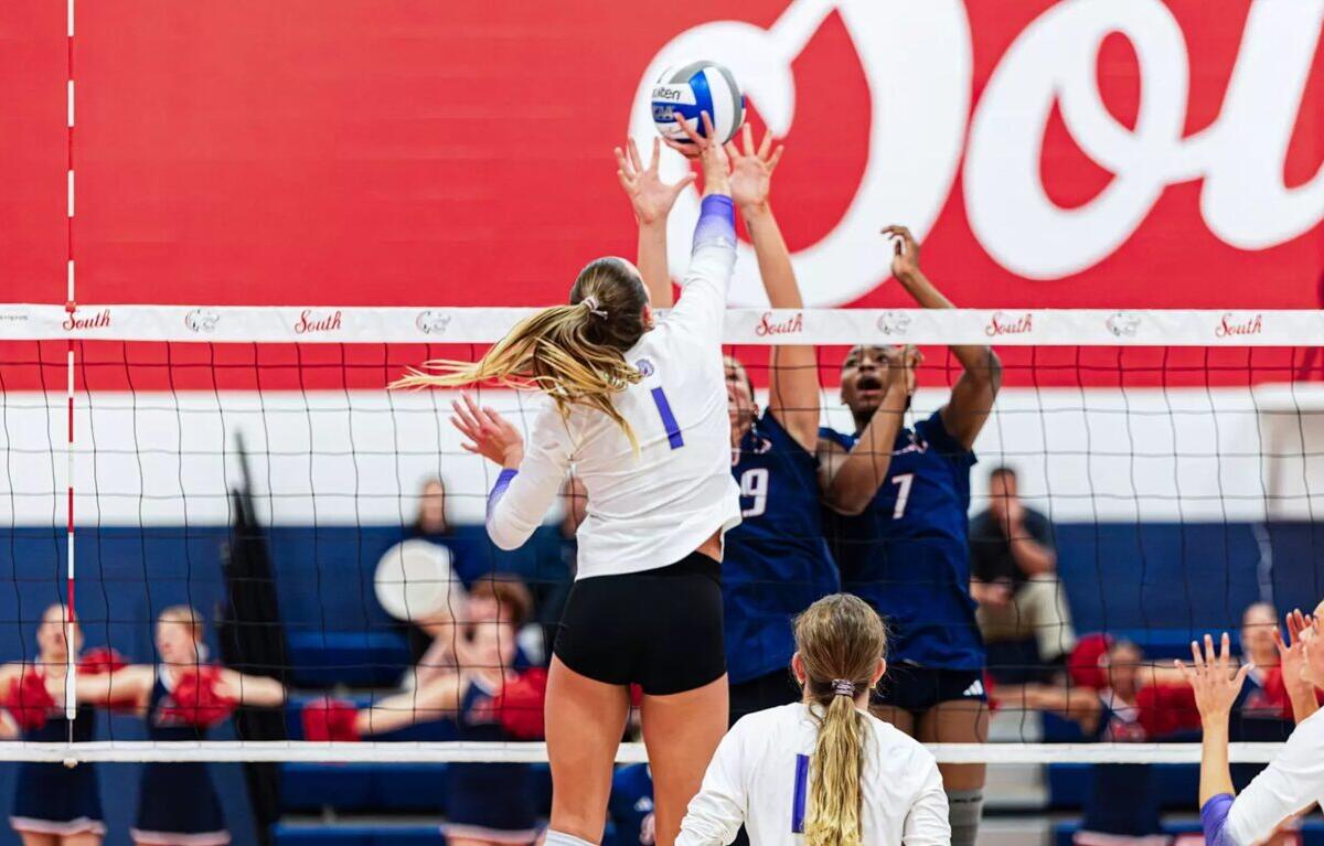 Cambria Gaier led South Alabama with 16 kills, while Eva Dittmar and Maradith O’Gorman finished with 14 kills each.