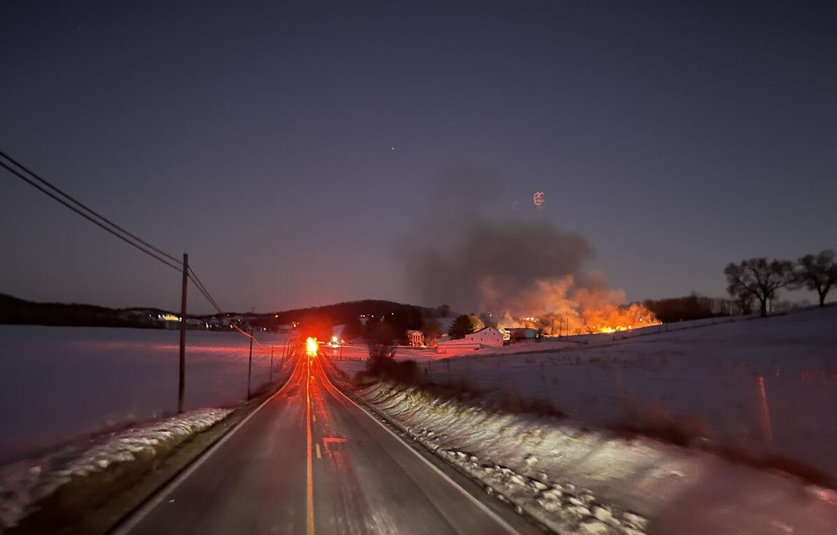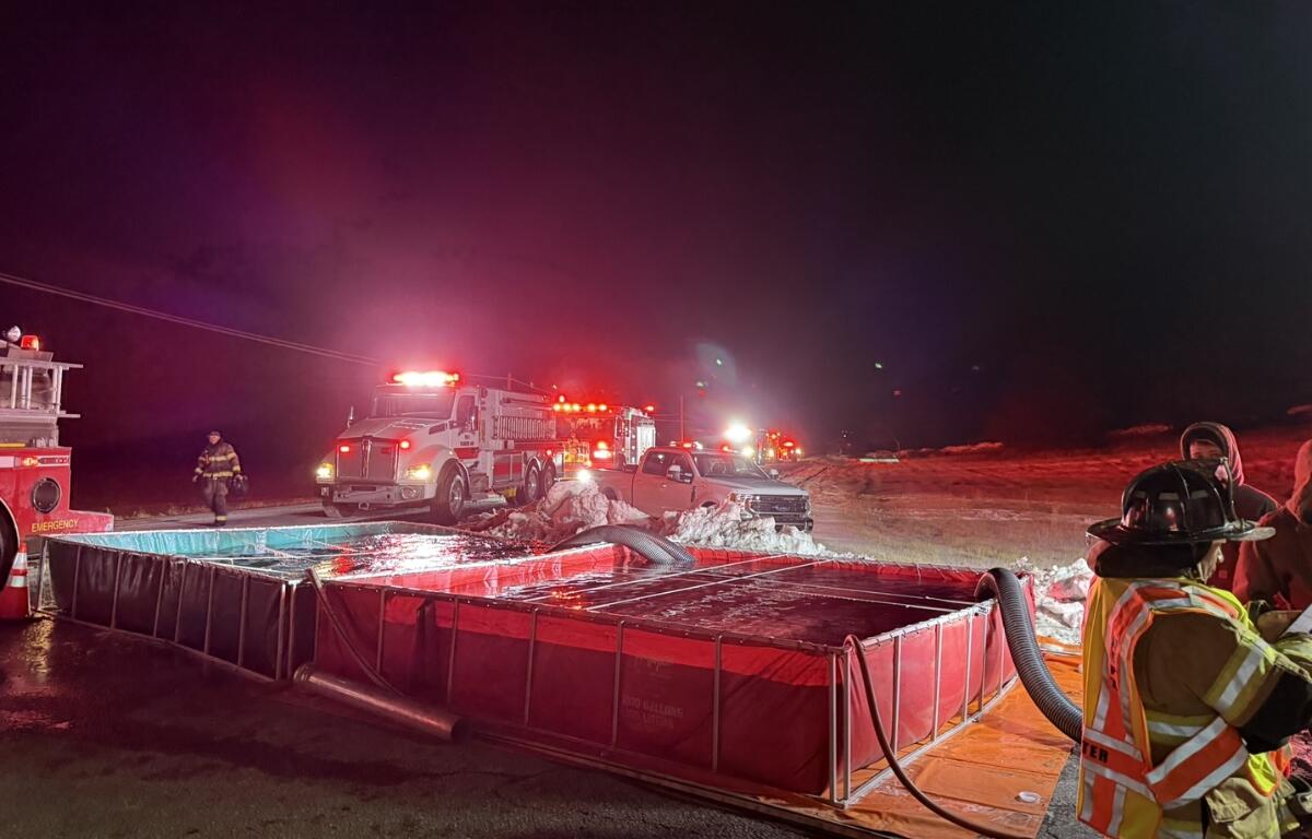 Water supply quickly became a central focus of the operation. Three tankers initially supported suppression efforts, a number that later grew to seven tankers and one pumper/tanker as the scale of the fire became clear. Frigid temperatures and steady winds added significant challenges, at times requiring tankers to be taken out of rotation to thaw frozen components before returning to service.