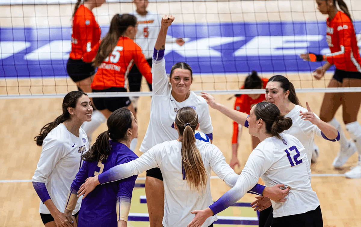 • Down 26-25, JMU scored the last three points of the set to rally for the 1-0 lead.