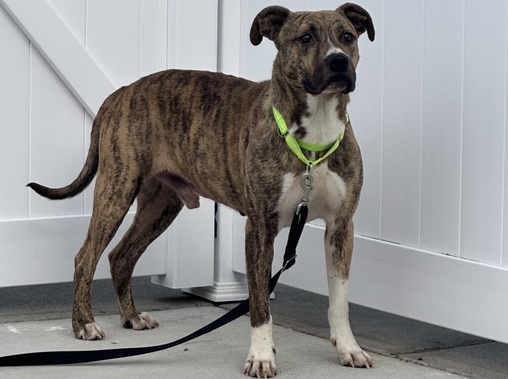 Meet Buddy, a sweet and shy 6-year-old Pit Bull Terrier. Buddy may need a little time to warm up to new faces, but with patience and love, he will surely blossom into a loyal companion. While he hasn’t had much experience around kids or new visitors, we believe that with the right family, Buddy’s loving nature will shine through. He deserves a patient, understanding home where he can feel safe and loved. If you’re interested in meeting Buddy, please inquire at the front!