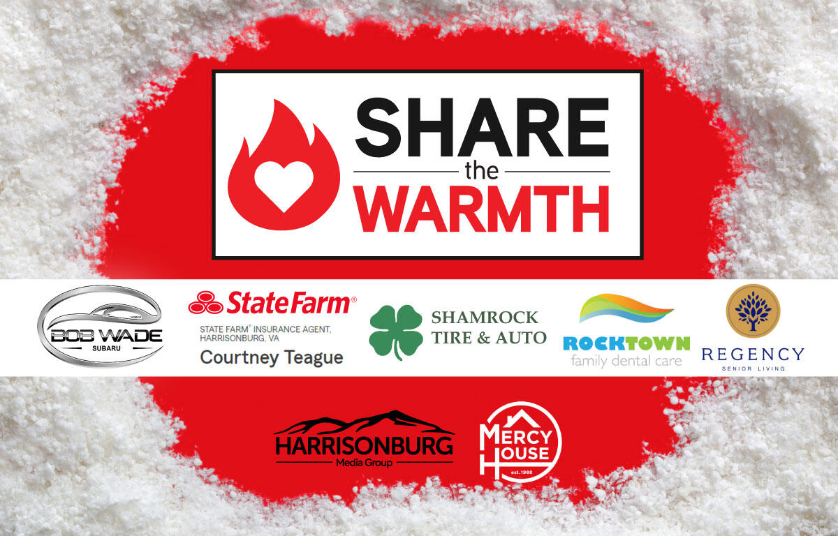 Harrisonburg Media Group, together with Bob Wade Subaru, Courtney Teague State Farm Office, Shamrock Tire & Auto, Rocktown Family Dental Care, and Regency at Augusta are teaming up to Share the Warmth this year.