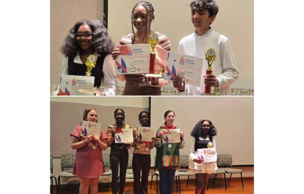 Tzophia Francis placed 2nd and won $250. Promise Wayland played 3rd and won $125. The two students will compete in Williamsburg in June.