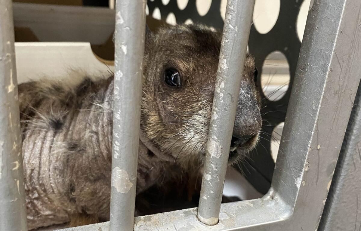 AUGUSTA COUNTY, VA (Wildlife Center of Virginia) — On December 13, the Center admitted a Woodchuck from Staunton, Virginia, after being found with severe hair loss. The animal had been caught in a live trap by the property owner for relocation, but when the owner noticed that the Woodchuck was missing most of his fur, they brought him to the Center for evaluation.