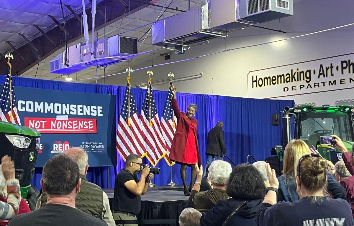 ROCKINGHAM COUNTY, VA (Rocktown Now) — Republican gubernatorial candidate Winsome Earle-Sears and Republican candidate for Lieutenant Governor John Reid stopped by the Rockingham County Fairgrounds this afternoon for a rally 5 days ahead of Election Day.