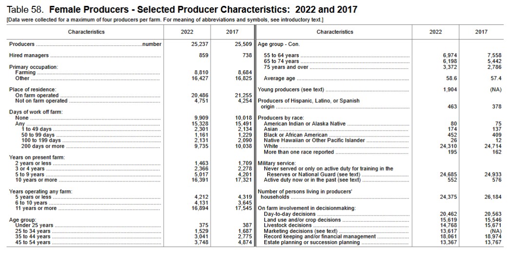 USDA stats on Virginia female farmers (2022). | Image source: USDA.